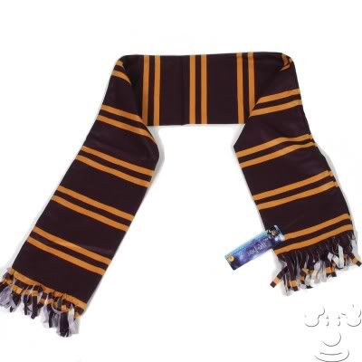 - A Gryffindor scarf -- is about 56 inches long, made of a nylon/polyester blend, and has 2-inch tassels.
