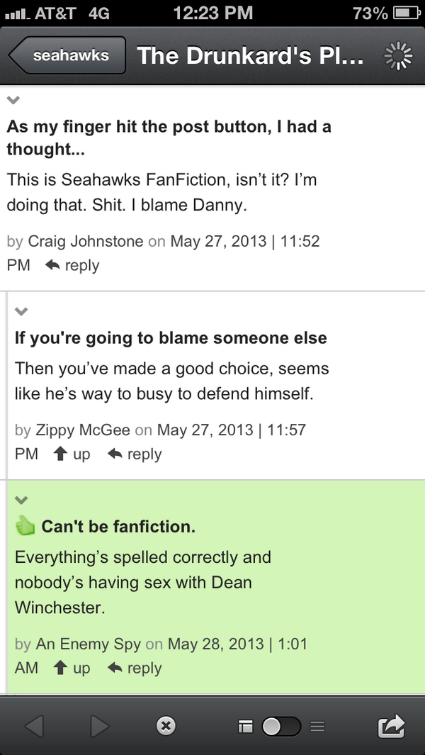 Aug. 26th, 2014 02:24 pmI was reading an article on Field Gulls today... it was one of those ones I really enjoy that broke down specific plays from a game. I understand the basics of football very well, but some of the strategies and concepts... woosh! There's a lot more going on than what I see on the field.